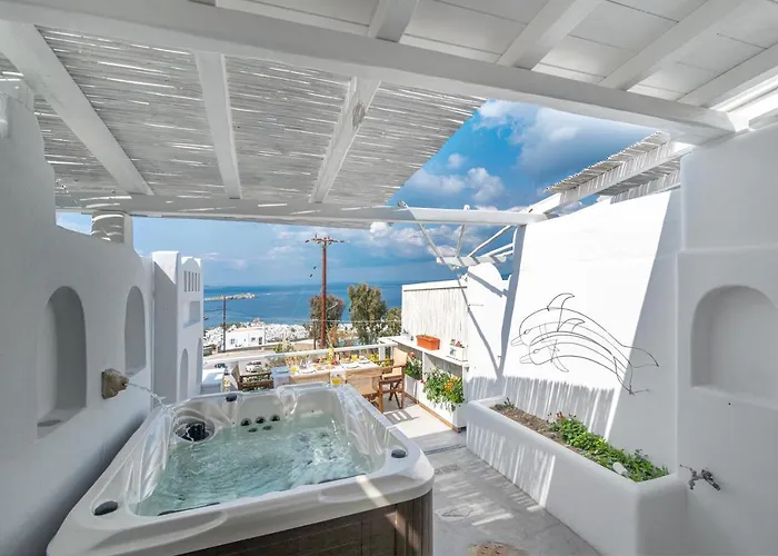 O Bella View Mykonos Town Suites de 8 quartos está localizado a uma distância de 3.1 km de Praia de Agios Stefano e a aproximadamente 10 minutos a pé de Museu Marítimo de Aegean. Além disso, este apartamento garante a segurança dos hóspedes através de cofre, oferecendo também vistas para o jardim.